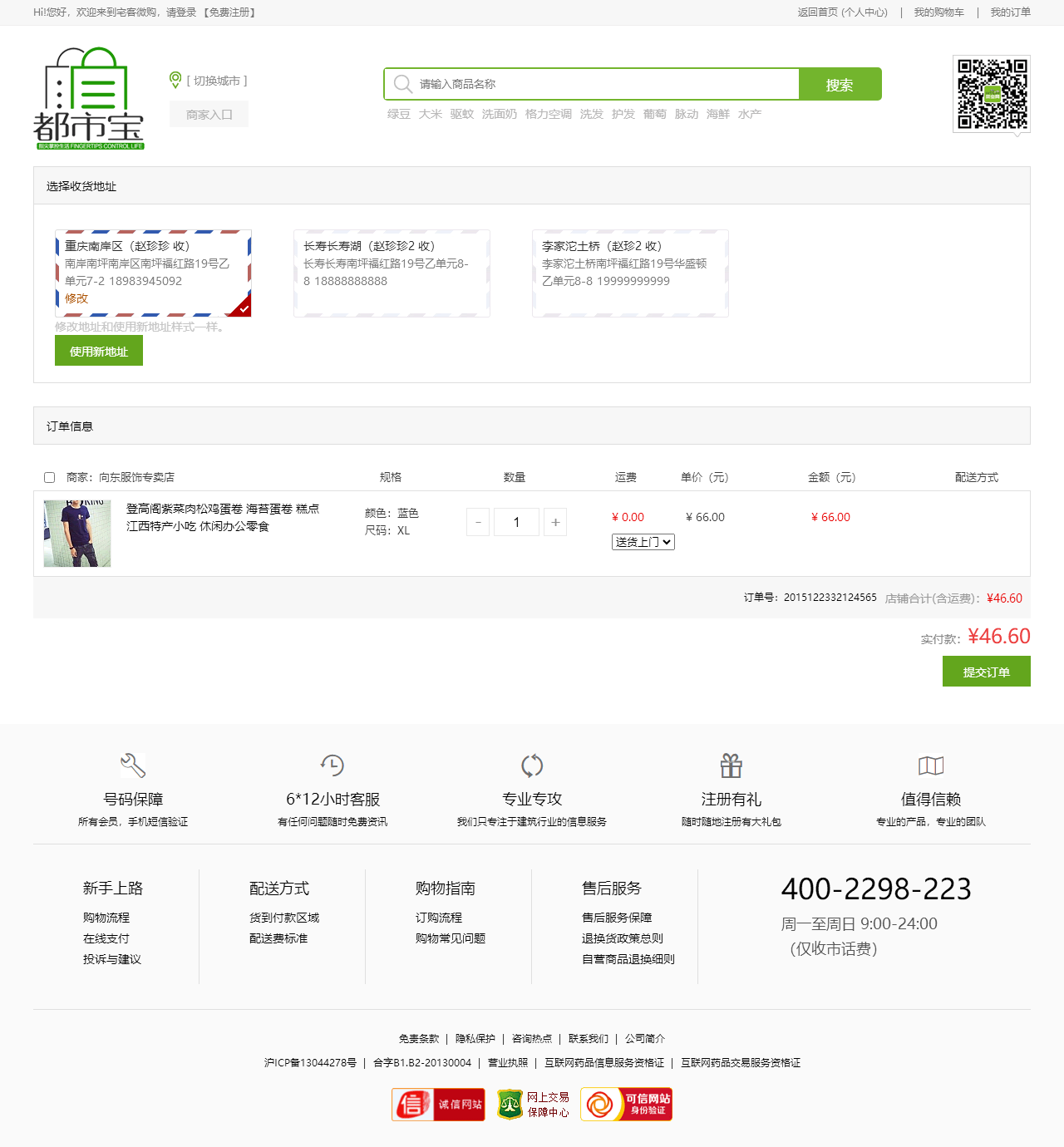 绿色的生活服务平台购物商城模板html源码(购物车数字可变,金额不变)