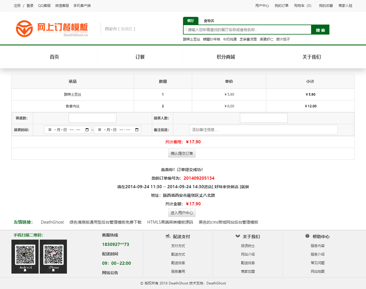 绿色的网上订餐系统模板html源码(购物车数字可变,金额不变)